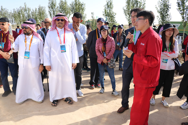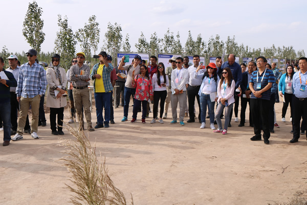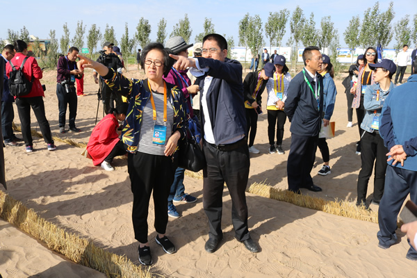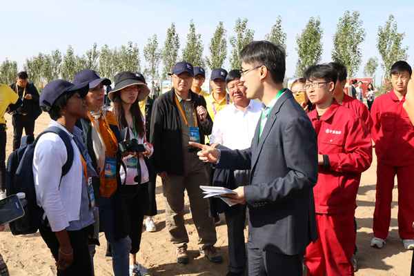 “一帶一路”生態(tài)治理民間合作國際論壇代表考察甘肅建投全國荒漠化防治(機(jī)械治沙工程)試驗示范基地