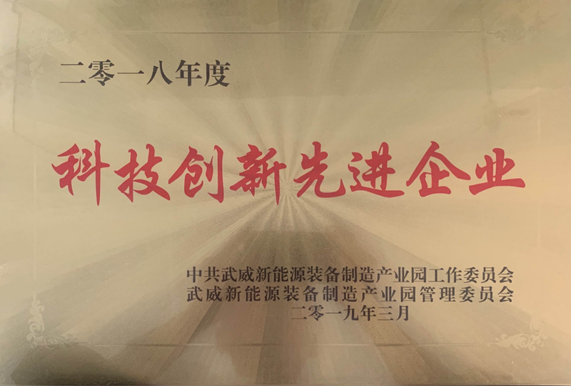 2018年度武威市新能源裝備產(chǎn)業(yè)園科技創(chuàng)新先進(jìn)企業(yè)